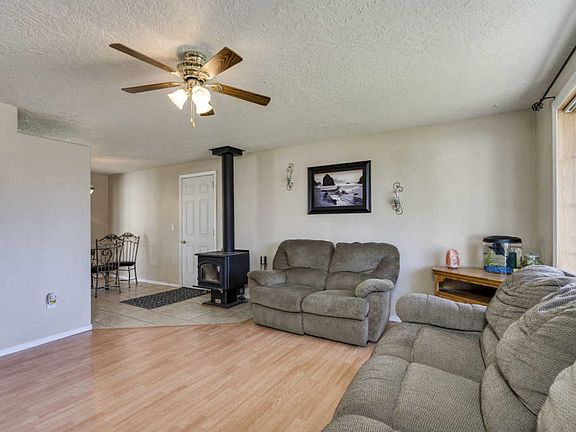 Single level 3 bed and 2 bath home on large lot. Large master bedroom suite, laminate flooring, wood stove and A/C. Landscaped yards with sprinkler system, covered deck, fully fenced, RV parking , 10x12 garden shed with power, single car garage with an attached 24x26 shop, insulated with concrete flooring, drive through doors with openers, A/C unit and 220 amp power. Shop plumbed for wood stove.