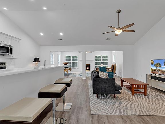 Turn key home now available in the Ashley Cove section of Myrtle Beach Golf and Yacht! This is the one you have been waiting for, offering three bedrooms, 2 bathrooms and a 2 car garage. As you enter 6949 Antonio Lane, the first thing you notice is the exceptional landscaping and aesthetics of the home, with beautiful flowers, lawncare, hardscape and pavers and river rock in the flower beds. Entering the home, you will find the same attention to detail with LVP flooring throughout the home and neutral paint. The vaulted ceilings in the living room, kitchen and dining are accepted with recessed lighting throughout. You will love the additional entertaining space provided by the den area, surrounded by windows allowing in plenty of natural light and a cozy fireplace. The kitchen is outfitted with white shaker cabinetry, quartz counters, tile backsplash and stainless steel appliances. Off the kitchen, you'll find a drop zone/mud room area with the washer and dryer, leading to the two car garage. The primary suite is also on this side of the home, offering a large bathroom with custom dual sink vanity, soaking tub, standing shower, and a spacious primary closet. The opposite side of the home also provides two additional bedrooms and a full bathroom with tub/shower combo and modern vanity. Enjoy morning coffee under the shade of the large umbrella on the back patio, or head down to the community pool, amenities center, tennis courts or playground. Myrtle Beach Golf and Yacht is a gated community with security and low HOA dues, close to Highway 707, Highway 31, part of the St. James School district and just a quick drive to Surfside and Garden City Beach. This immaculate home in the back of this highly desired neighborhood will not last long. Take the 3D Virtual Tour and schedule your appointment today.