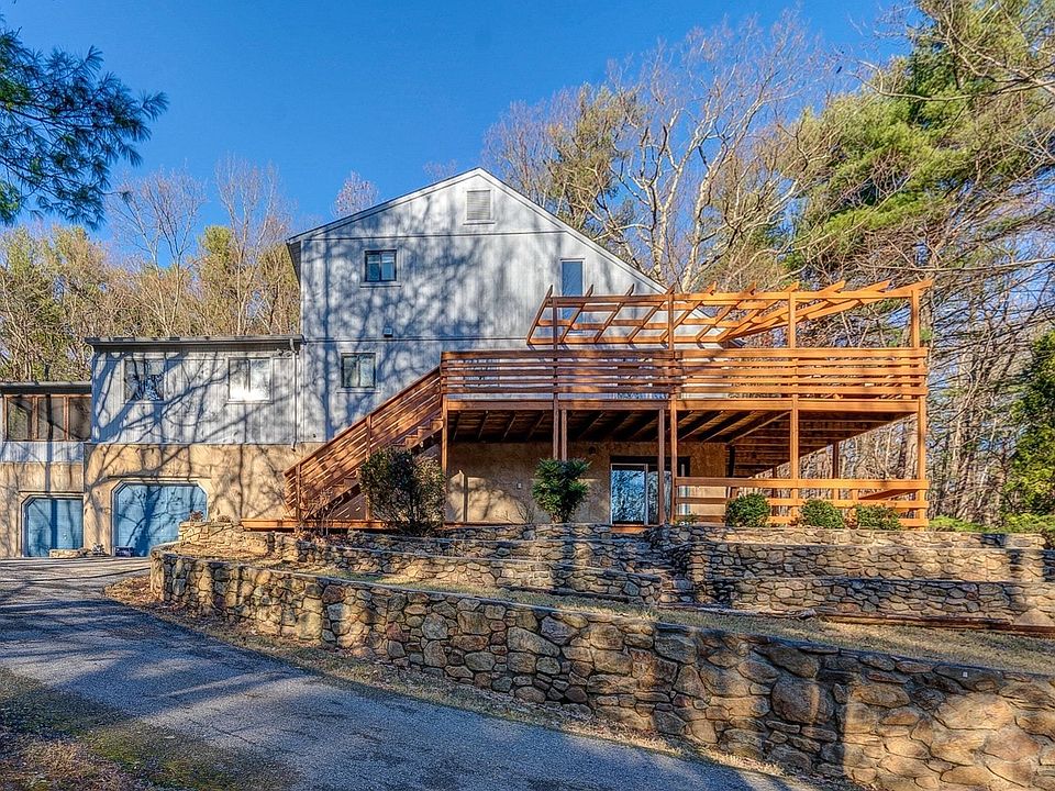 Private contemporary on a gorgeous 2-acre wooded lot. Dramatic open floor plan with cathedral ceiling, offering an amazing amount of natural light. The Entry level has a fabulous updated Kitchen with a pantry providing plenty of storage, Great room with stone fireplace with wood stove insert, 2 bedrooms with new carpet, renovated full bath and a huge screened porch wired for TV. Upstairs you find 2 more bedrooms, one with its owned screened in balcony and a second renovated full bath. The lower level has been finished with the addition of a family room, office (currently decorated as a 5th bedroom) a large laundry room, half bath and lots of storage. The garage space is expansive with the second bay being a double depth adding space for a workshop or even more storage.