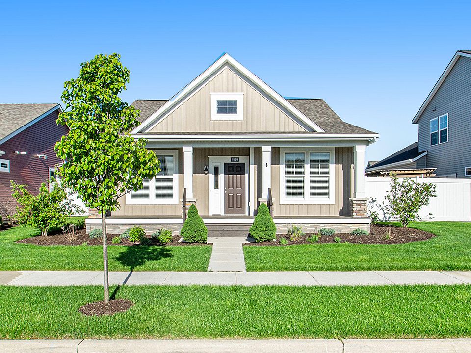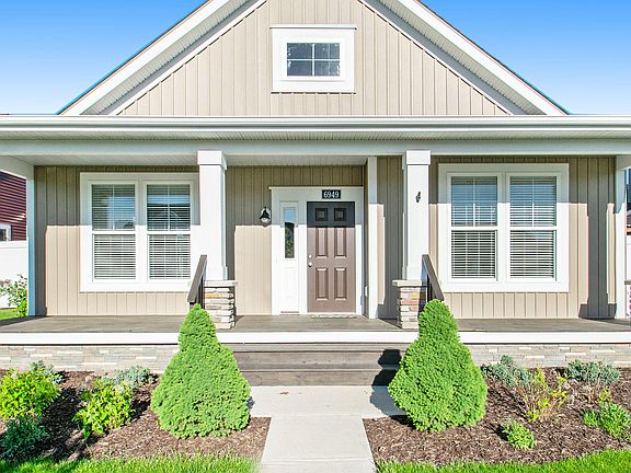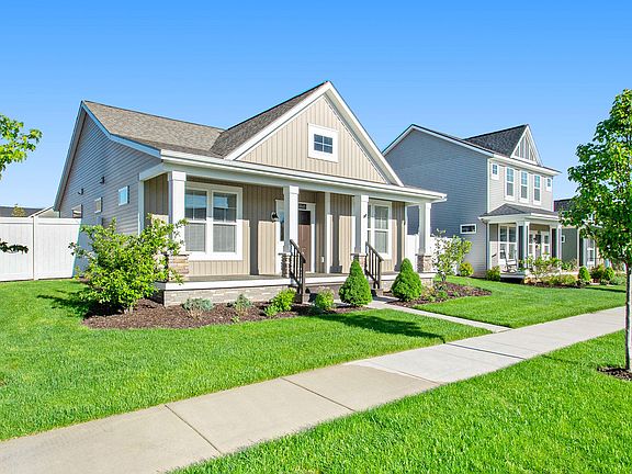 Welcome to 6949 E Cottage Lane located within the desirable community of the Villas at Town Square. This 2-bed, 2-bath Garland Plan by Eastbrook Homes offers a private, fenced yard with walkability to Ric's Food Center, Genesis Salon, Timber's Restaurant and Vitale's. Seller has not lived in the home and some appliances have only been plugged in to ensure operation at this time. Seller upgraded many finishes including stone facade at front patio apron, granite counters in all bathrooms, hardwood and DuraCeramic flooring, epoxy flooring in garage and Generac whole home generator. Possession available at closing.