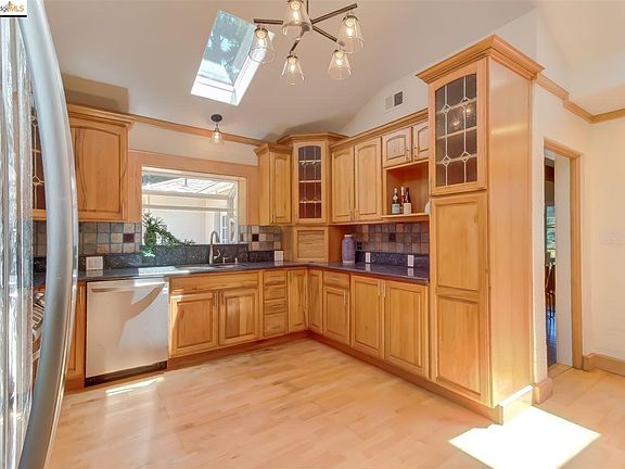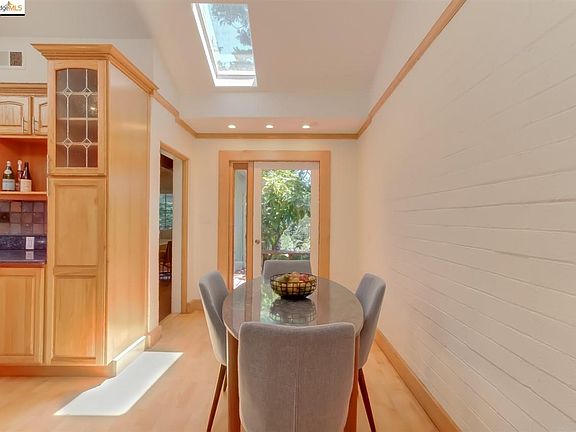 Updated and refreshed, ready for summer bbqs on the level backyard! Nicely laid-out 3 bedroom/2bath home in Montclair. Kitchen and both bathrooms have been renovated. Kitchen boasts all new appliances and plenty of room for table to enjoy breakfast in the sunny space. Two outdoor areas for al fresco dining right outside of the kitchen. Huge great room for living and formal dining has massive wood timbers and large fireplace. French doors from the living room lead to protected outdoor entertaining space. New dual pane windows . Garage conversion to master bedroom and bathroom done with permits. Master bedroom has separate door to allow for flexible use, such as in-law or au-pair space. A couple of steps to level entry and one floor living. Fruit trees abound, provide amazing Queen Anne cherries, pears and apples. Some neighborhood children ride their bikes to school from this street via trail off of Shepard Canyon.