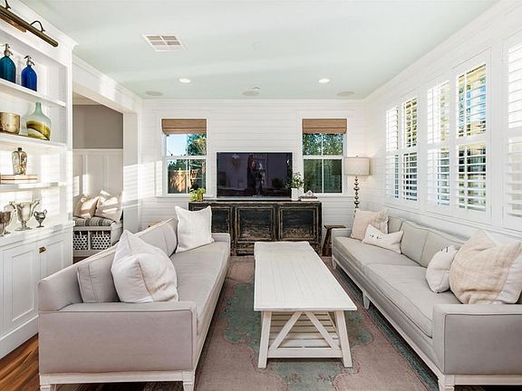 Impeccably remodeled coastal home in the exclusive Avellino enclave of La Costa Greens! 3 miles to iconic Ponto Beach. Coveted corner lot w/ fully landscaped garden & covered front patio. No detail was missed by designer homeowners who renovated top to bottom, intending to live here forever; customizations exceed $300,000 inside & out. Windows fill the home with light, and wooden shutters & Roman shades allow for added privacy. Dreamy English-inspired kitchen features Calacatta marble counters, La Cornue French 36” range, integrated appliances, inset cabinetry to the ceiling w/ unlacquered brass hardware & faucet, and an apron sink. Custom millwork & storage adorn the entire home - the main living space houses bookcases w/ lighting, cabinets, a desk, & white oak drawers. The primary suite features a window seat w/ drawers, built-in bookshelves & linen closet, tongue-and-groove walls & ceilings. All 3 BRs have built-out closets w/ shelving & hanging space. Hardwood staircase surrounded by board & batten on walls & marble windowsill. Wood floors throughout, including white oak in primary & secondary BR. The spacious upstairs loft, perfect for an office or hangout space, can be easily enclosed for an optional 4th BR. Powder BA has an apron sink, ideal for bathing pets or babies. Experience indoor/outdoor living via French doors that open to the lush backyard. Enjoy your coffee surrounded by roses, lavender, rosemary, flowering plum & redbud trees. Exclusive access to resort-style amenities at The Presidio featuring a Junior Olympic pool, tennis & pickleball courts, fitness facility & more! Local restaurants in walking distance. 10 minutes to Carlsbad Village & Encinitas. 30 minutes to Downtown. To see it is to love it! This home will surpass your every expectation!