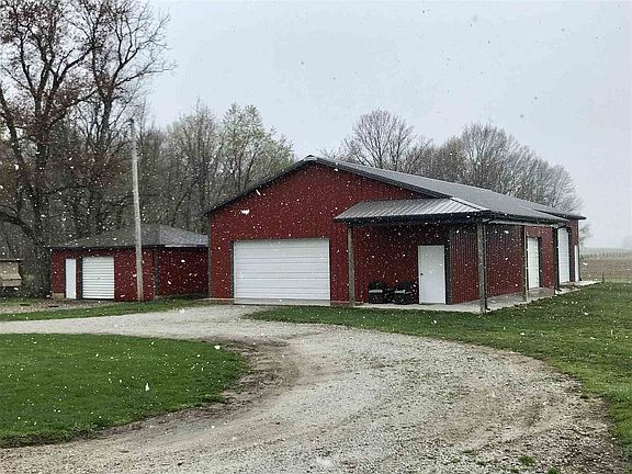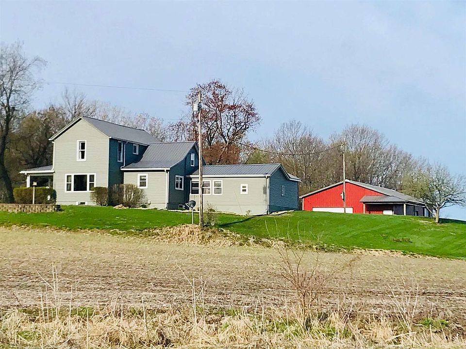 Beautiful Country Setting overlooking nearly 57 acres. Sit on the front porch and enjoy the tranquility of sunrises and sunsets. Approximately 54 Tillable Acres. Farm House remodeled like new! Large 36x64 Pole Barn plus 20x24 Outbuilding with lean-to. Inside appealing features include Large Eat-in Kitchen with newer countertops, backsplash and flooring. Bathroom has double vanity & tiled shower. Large Great Room with plenty of windows, 3 Bedrooms, 1 bath plus a 15x13 unfinished area plumbed for a 2nd Bath that can easily be finished. Home has newer Metal Roof & Vinyl Siding. Home also has a 13x12 Breezway. Fenced in yard next to house and outbuilding. Current owner does profit sharing with a local farmer. North side property line is bordered by a ditch.