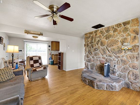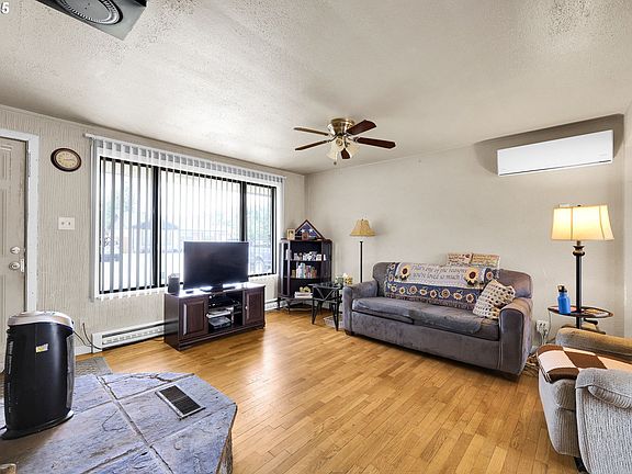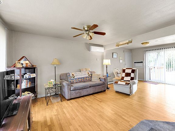 Charming 1-Level Home on Corner Lot! This well-maintained 3-bedroom, 1-bath home features real hardwood floors throughout the living, dining, hallway, and all bedrooms. The kitchen includes all appliances, and the efficient ductless heat pump system provides year-round comfort. Inside laundry room with sink and backyard access. Sliding door off the dining area opens to a deck and spacious, fully fenced yard—perfect for pets, gardening, or entertaining. Ample parking with space for RV, plus a 1-car garage with loft storage and an additional large storage shed. Located on a desirable corner lot with great outdoor space and functional layout. A must-see!