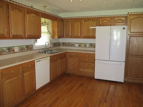 Looking for 1-level living in a county setting, look no further! This lovely all brick, one level home featuring 3 nice sized bedrooms, 2 full baths, updated kitchen, large living room with fireplace with hardwood floors on main level. Basement completely finished with shower and sink and hookup for propane in den area. Circular drive with one car attached carport, large outbuilding/workshop in rear and fenced dog lot. The roof is approximately 1 year, refrigerator 1 year. Home is situated on a double lot making a great size yard totaling 2.3+/- acre Property being sold in “as is” condition.