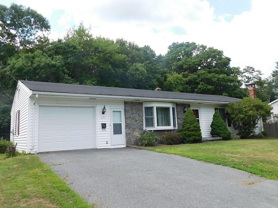 Original owners family is selling this immaculate one level Ranch home situated in the Almy Rd area. Many upgrades in the last 2 years including new Anderson windows throughout, bow window in the living room, updated heating system, hot water tank and the Central A C system. All new interior doors and hardware, exterior, and garage door Oak hardwood flooring through out , new counter top in the main bath. Full lower level with wet bar and brick hearth to accommodate a wood stove or free standing fireplace. . Large sprawling yard partially fenced in and abutting the Somerset conservation land to ensure ongoing privacy. . Storage shed. Slider from the kitchen/dining area leading to a patio. Price to sell. Won't last'