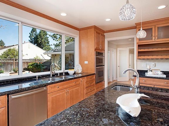 Located in the highly desirable Rancho neighborhood with excellent Los Altos schools. This extensively remodeled home offers a contemporary design and color palette, while inviting you to experience indoor and outdoor everyday living, as well as formal entertaining. Chef's kitchen with granite counters, stainless steel appliances, gas stove, oversized hood, large island with prep sink, and informal dining. Formal dining room with french doors to the back patio. Living room with gas fireplace. Family room with cathedral ceiling, gas fireplace, built-in cabinets, and a possible second master suite with separate entrance. Master suite with spa-inspired bathroom, jetted tub, oversized shower, marble counters, walk-in closet. 3 sun-filled bedrooms share updated bathroom with 2 vanities, shower over tub, pool access. Office with built-in desk and display cabinets. 2-car garage. Private 10,902+/- square foot lot for playing and entertaining, offering all the best of a Los Altos lifestyle.