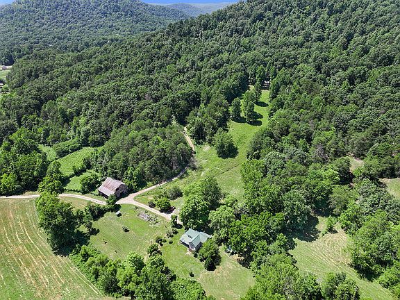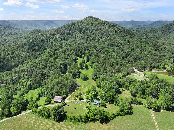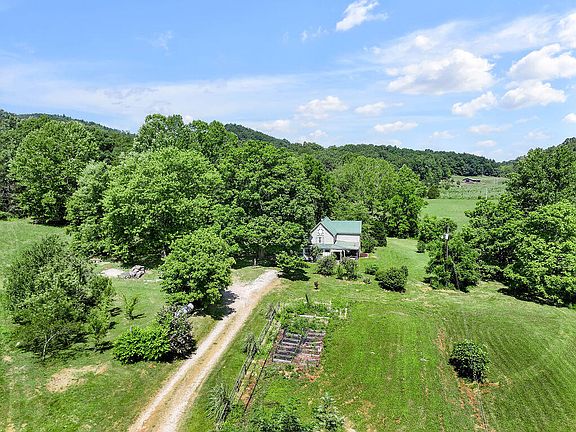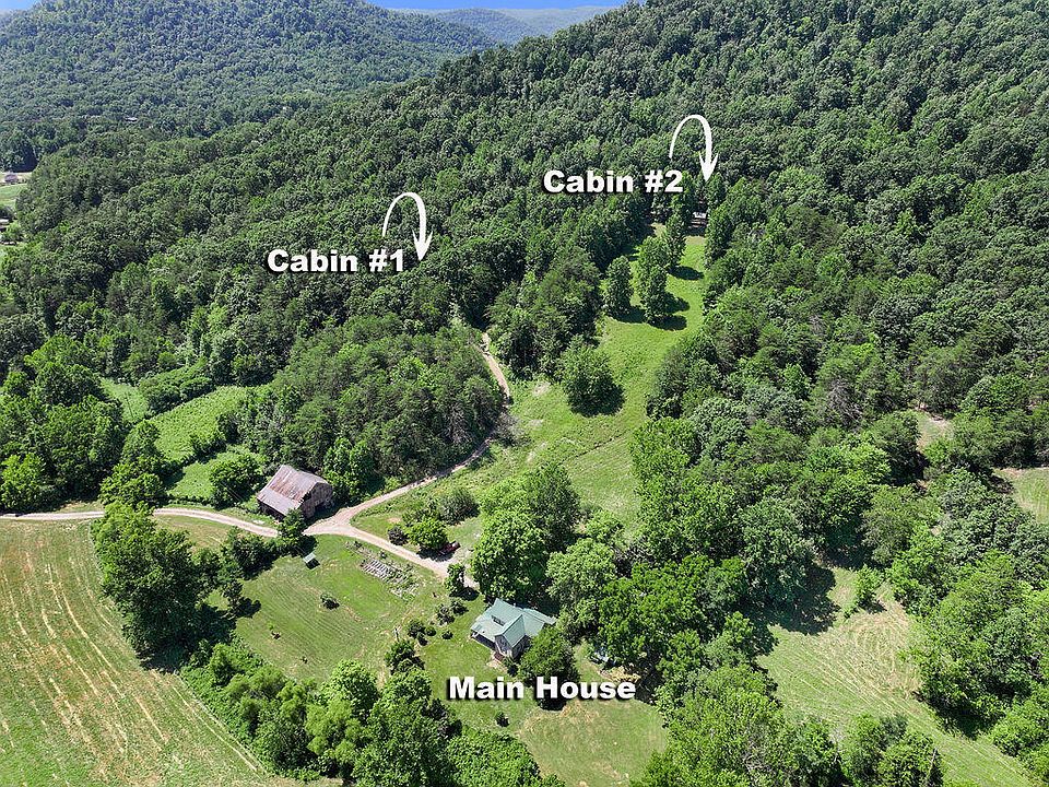 1920s farmhouse on old tobacco farm with 2 off-grid cabins, an old barn and outbuildings on 20.52 beautiful acres (several cleared acres as well as forested land going up the mountain). Mature perennials & fruit trees including grapes, sour cherries, peaches, pears & apples. Great potential for gardening, homesteading & livestock. The main house has 2 bedrooms & 2 bathrooms, one which features an oversized soaking tub. The kitchen boasts new countertops and a gas range. Oak interior walls in the family room, a beautiful covered porch to enjoy the seasons, charming wood stove insert as well as gas logs, and recently installed mini-splits. House is on town water but also features a stone lined dug well and old cistern under the house. The lower cabin is newly constructed w/ thoughtfully sourced materials including local poplar & oak & awaiting finishing touches. Upper cabin is several years old & has been rented successfully on Airbnb in the past. Noteworthy for beautiful mountain views & quiet setting. Includes water catchment system & outhouse with flush rv toilet, & camp shower. Short drive to local hiking spots, approx. 20 min to Berea & Richmond, and 45min from Hamburg shopping