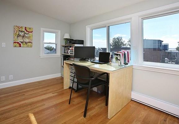 Newly constructed in 2015, this 1 bedroom plus guest room/office, 1 bath floor through Penthouse has granite and stainless kitchen with breakfast bar, 9'+ ceilings, hardwood floors, recessed lighting, crown molding, central air, great light, in-unit washer/dryer, luxurious shower with dual jets, custom window seat and exposed brick in bedroom, deeded storage and the right to build a private roof deck.