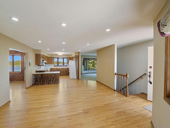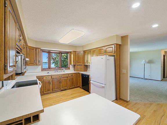 Enjoy your Lakeshore lifestyle experience in a less hectic and rural setting. Swimming, Boating, Fishing and Family Fun.....it's all here on Rock Lake! This well-built Walkout Rambler with 3000 sq ft is sure to please, and thoughtfully designed for convenience and lake views from every level. Oversized lake lot at 1.19 acres and 170 feet of shoreline, provides extra space for your lake activities. Many upgrades here with bay windows, cozy wood-burning fireplace, gleaming hardwood floors, maintenance free decking, steel siding, plus a newer roof and furnace. You will love His & Hers closets in the primary bedroom, as well as a convenient makeup station. The spacious family room and kitchenette in the lower level is ideal for entertaining. Award winning Maple Lake school district.