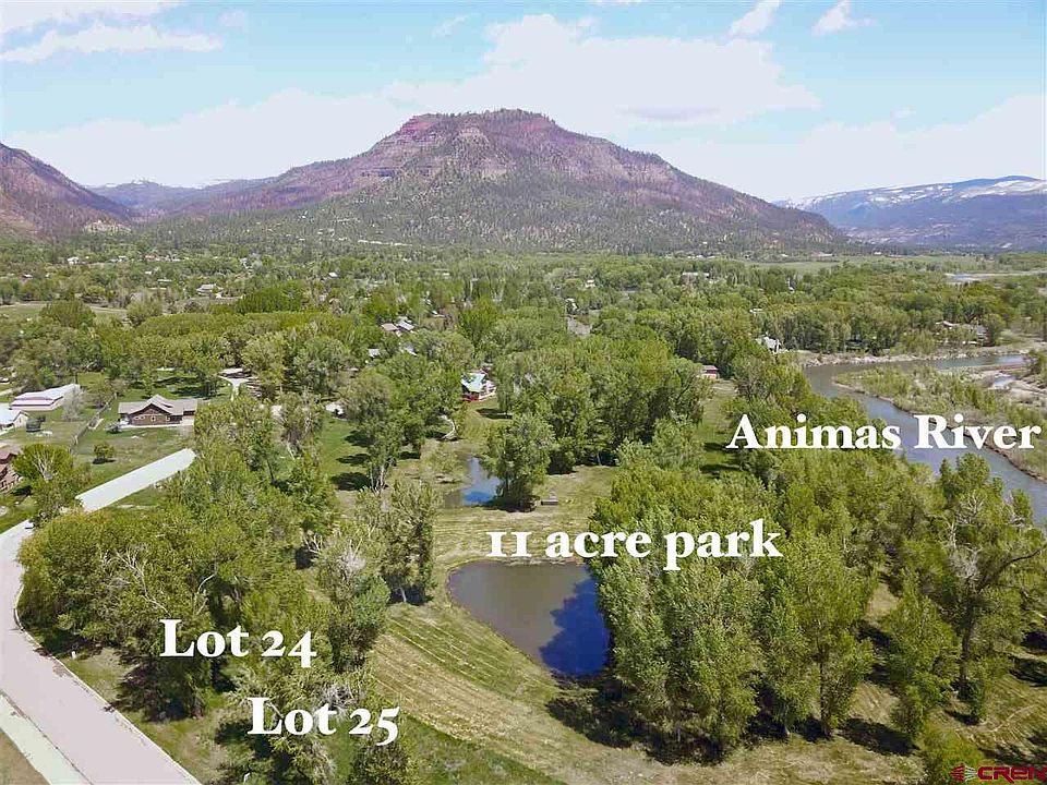 What a beautiful place to live! The Cove, just north of Dalton Ranch in Durango, is an exquisite small subdivision of only 42 lots, with private Animas River frontage. In fact, the open space enjoyed by the homeowners here includes 11 acres of a lush park with ponds on one side of the river and 24 acres on the other side of the river, ensuring no future building will happen across the water. Giant cottonwoods, up to 150 tall, grace the subdivision and youll enjoy the water rights which come with the annual HOA dues of only $500, allowing for lush lawns, gardening efforts and water features. Far enough off of Hwy 550 precludes any road noise, and PJs Gourmet Market, True Value Hardware and the Dalton Restaurant, golf, tennis, swim and workout facilities are right down the street. Just a ten minute drive up from town, and 15 minutes on up takes you to world class skiing at Purgatory. The ideal area for the active, outdoor enthusiast; you can walk over to the river for fishing, paddle boarding and other river sports! This lot, #24, backs directly to the lovely 11 acre park (maintained by the HOA) and pond - and can accommodate a single level or two story home with fabulous views out the back. Minimum home size requirement of 1600 sf, with maximum of 2540 sf - variances can be granted allowing up to 2900 sf +/- Central gas, water and electric to each lot line. The low HOA fees cover park and open space maintenance, exterior water rights, snowplowing and road maintenance. Seller will entertain financing with a minimum 30% down. Secure your spot in this beautiful area today!
