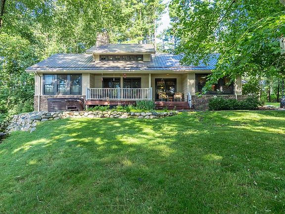 Up North Setting without the drive! Serene privacy with 227' of lakefront on Pine Canyon Lake. Former "Parade of Homes" property with picturesque views of the lake and woods from every room. Meticulously maintained one story home with an open concept living room, kitchen & dining area that is ideal for gathering. Split bedroom floor plan with two generous en-suites. Both en-suites are lakeside with walk-in closets and recently updated bathrooms. The perfect setup for a shared living situation. Living room features a 16' ceiling with gorgeous stack stone gas fireplace, clerestory windows & luxury vinyl plank flooring. Kitchen boasts a breakfast bar, custom Hickory cabinetry, solid surface countertops, tile backsplash, built-in pantry cabinet and tile flooring. Dining area has a slider that walks out to a lakeside covered deck. Laundry room provides cabinet storage, a utility sink & a full size washer/dryer. Sunroom leads to a lakeside stamped concrete patio. The den with 2nd gas log fireplace is fantastic for relaxing. A spacious yard with it's gentle slope to the lake allows for lots of outdoor activities while inviting you to enjoy the lake. 3 car attached garage includes built in storage cabinets, a workstation & attic storage. The crawlspace provides even better storage with 1820 sq ft, water sensors, dehumidifier, well lit, clean, dry and climate controlled. Marvin Windows throughout. New Generac whole house generator in 2024. New furnace & central air in 2021. New sump pump with battery pack in 2019. New metal roof in 2018 with transferable lifetime warranty. Pickleball court, hot tub & 30AMP RV hookup. HOA fee maintains common areas, tennis & basketball courts.
