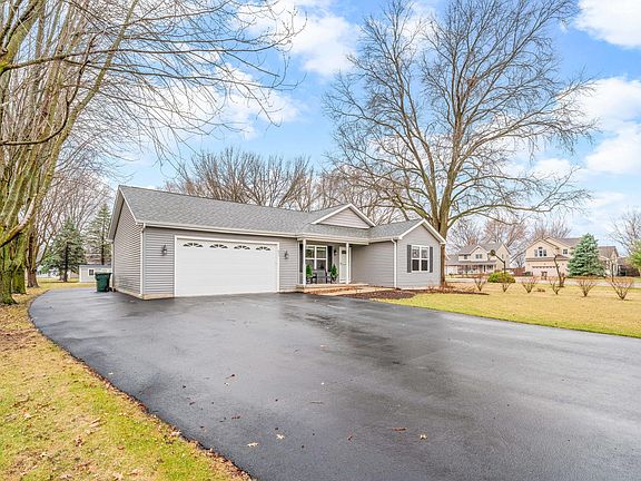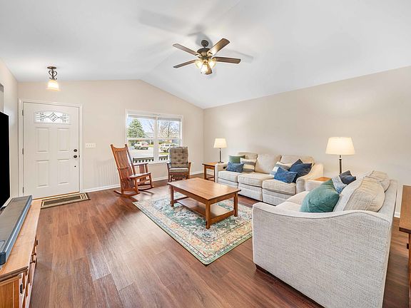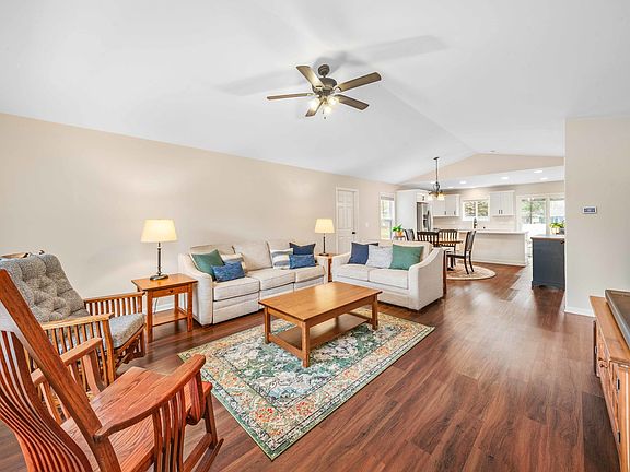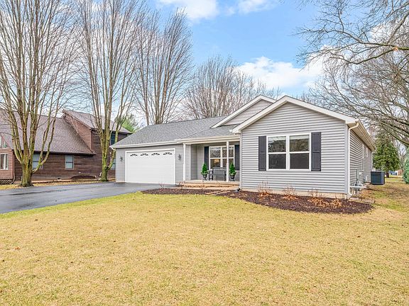 CUSTOM BUILT 2019 RANCH W/LAKE RIGHTS! This beautifully crafted 3-bedroom, 2-bath home offers an inviting open-concept layout with vaulted ceilings and a desirable split floor plan. The recently updated kitchen boasts brand-new cabinets w/soft close doors & drawers, dovetail drawers and many built in features, quartz countertops, a large island, and stainless steel appliances. The spacious master suite features a walk-in closet, a luxurious bath with a double bowl vanity, a soaking tub, and a separate shower. The secondary bedrooms share a nice hall bath. Enjoy stylish and durable vinyl plank flooring throughout except for the tile bathrooms. New front screen door leads to the porch that is large enough for seating to enjoy your morning coffee or an afternoon refreshment. Step outside to a large deck overlooking a generous shady yard, complete with a new shed for extra storage. The spacious 2.5 car garage is extra deep with boats in mind. The large driveway has additional space for ample parking, including room for a boat and/or RV. First floor laundry room. Basement bath & water softener plumbing is roughed in. Lake rights, dock rental options and modern upgrades throughout round out the perfect package for a primary home or a weekend getaway. Must-see! Make Lake Holiday your favorite place to be with year round activities and amenities. Schedule your showing today!