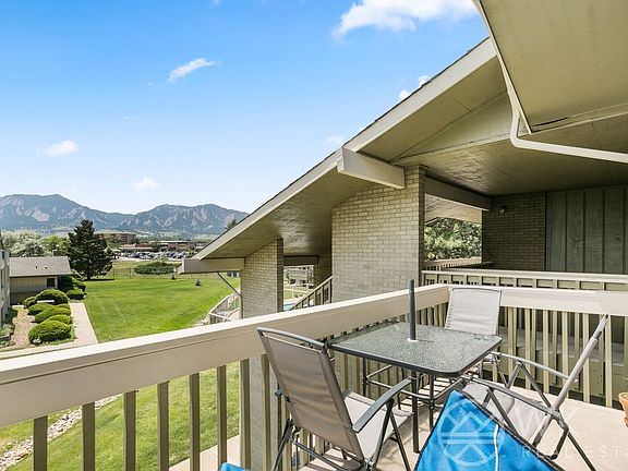 Stunning Flatiron Views from this Manhattan West condo! Incredible location within the complex- overlooks the pool and in a quiet interior location away from the road and parking lot. 2 bedrooms/ 2 baths. Kitchen is open to the living room with wood burning fireplace and access to the patio that overlooks the pool and mountain views. Washer/dryer in the unit. HOA fee includes water and heat. Pet friendly. Convenient location, easy access to RTD, shopping, restaurants, trails and CU. Wonderful opportunity!