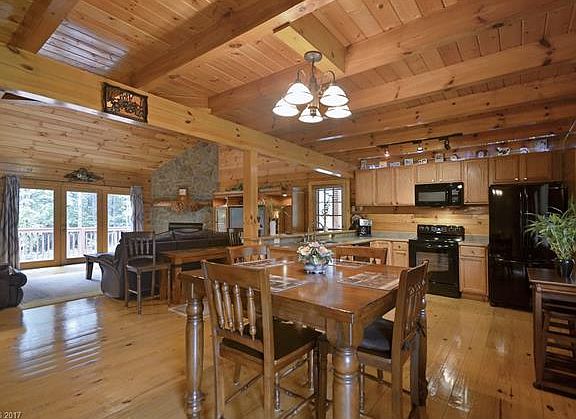 Are you looking for a mountain vacation year round? Cross the red covered bridge, over the Broad River, into the established gated community of Twelve Mile Post. This beautiful log home sits on a mostly level acre, surrounded by mature trees in a private setting. You will enjoy a rocking chair on the large covered front porch with custom railings. The great room features a cozy fireplace with soaring ceilings and an open floor plan. The second floor has an open loft leading to the master suite. This setting feels very private while only minutes to Lake Lure, shopping, beach, & Chimney Rock Park. Head to the mountains and see this one today.