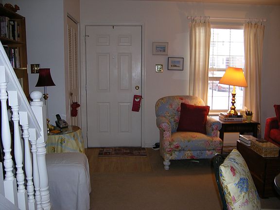 2-story townhome in quiet court, reserved parking out front. Spacious, light living room, powder room. Spacious kitchen, dining area has laminate hardwood floor. Slider to patio, back garden area. Upstairs large light master bedroom w/ceiling fan, ensuite bath w/shower. Washer/dryer upstairs. Full bath w/tub/shower adjacent to 2nd bedroom. Both bedrooms have double closets, plenty of storage and closet space downstairs. Carpet throughout w/laminate in kitchen/dining areas.