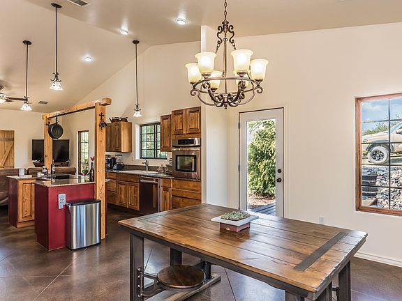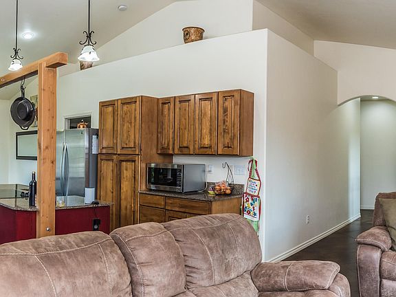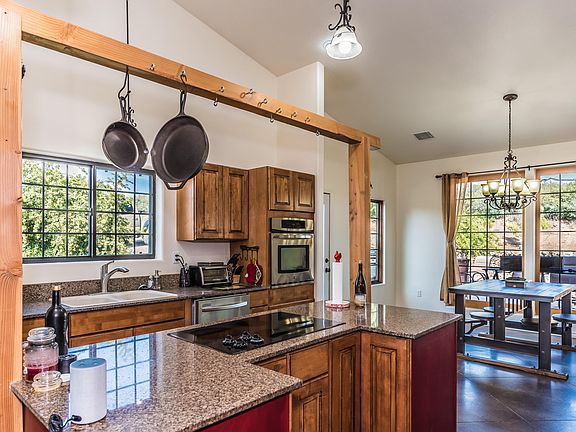 A wonderful Move in Ready Site Built Single Family home with a bright, open & spacious floor-plan sitting on 2 acres. Home is 1634sqft, 3 bedrooms, 2 bathrooms with numerous upgrades. Kitchen has abundant cabinet space with granite counters, SS appliances, wall oven, island with cooktop, and it opens up to the dining area and cozy family room. Home has vaulted ceilings, stained concrete floors in major traffic areas and ceiling fans throughout. Nice master bedroom has a walk-in closet with outside access to Hot Tub. Master bath has granite counters with 2 vanities and a large shower. Amazing extended deck/patio creates an abundant outside area for entertaining or enjoying the spectacular views. Outside acreage has a dog run, garden bed, storage shed, chicken coop and a goat pen area.