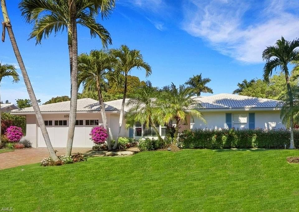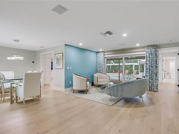 Welcome to an exceptional opportunity in the heart of the Moorings: where thoughtful design, privacy, and modern luxury come together. This beautifully remodeled single-family residence is tucked away on a quiet, secluded street in one of Naples’ most prestigious neighborhoods on a large .33 acre lot. The main home offers four bedrooms and four bathrooms in total, including a private one-bedroom, one-bath casita with its own entrance, ideal for guests, extended family, or a serene home office retreat. Recent professional renovations elevate the home throughout, highlighted by a striking contemporary kitchen featuring quartz countertops, a Fisher & Paykel induction cooktop, 54” Fisher & Paykel refrigerator/freezer, Wolf microwave drawer, TruBrand ice maker, and integrated refrigerated drawers. Wide-plank white oak hardwood floors flow seamlessly through the living spaces, bringing warmth and understated elegance. The primary suite is a true sanctuary, complete with a spa-inspired bathroom and a walk-in steam shower with bench seating. Outdoors, a private pool and spa are framed by a new pool cage with panorama screens, offering uninterrupted views of the lush, landscaped grounds. A privacy fence and mature hedges create a peaceful, resort-like setting perfect for relaxation or entertaining. Ideally located just minutes from Naples’ renowned beaches, fine dining, and upscale shopping, this home also benefits from being situated in an X500 (500-year) floodplain with levee protection—an added peace of mind. A rare offering in the Moorings, this residence delivers refined living, exceptional amenities, and a coveted Naples lifestyle.