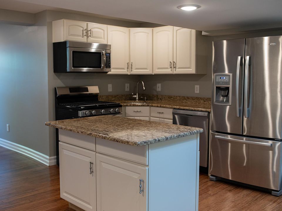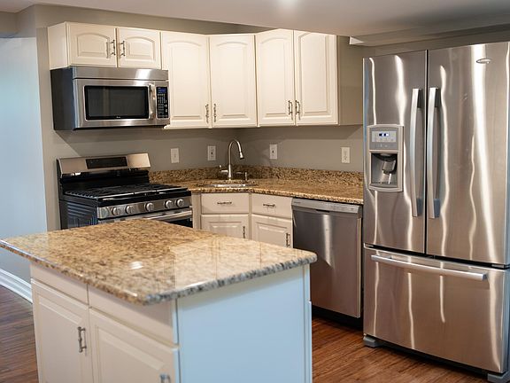 This great first floor unit was just renovated and is completely move-in ready! Spacious kitchen features granite countertops with island, pantry, newer stainless steel appliances, recessed lighting and beautiful bamboo flooring. Living room has vaulted ceiling and brand new carpeting. Huge glamour bath has vaulted ceilings and extra large tile shower and jacuzzi tub. Fresh paint throughout. Large, park-like backyard has inviting private covered patio. First floor unit with no step entry. Utility room offers plenty of extra storage space and has laundry hookups. Extra large garage space available for extra $100/mo. Excellent location close to all conveniences including shopping, restaurants, parks, and thruway access. Owner pays for water. Renter responsible for gas & electric. No smoking allowed. No pets preferred, but will consider for extra deposit/monthly rent.