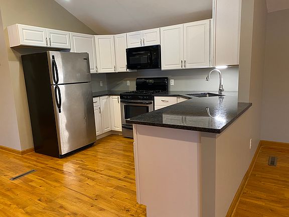 This great second floor unit was recently completely renovated and is move-in ready! Spacious & open floor plan has vaulted ceilings, beautiful hardwood flooring & woodwork throughout, and plenty of natural light. Kitchen feautures all new shaker style cabinets, granite countertops, pantry, and stainless steel appliances. Central A/C. Utility room in unit has washer/dryer hookups. Excellent location close to all conveniences including shopping, restaurants, parks, and thruway access. Owner pays for water. Tenant pays for gas & electric. No smoking allowed. No pets preferred, but will consider allowing cats for extra monthly rent. Large shed with overhead door available for an additional $75/month. Must have 650+ credit score.