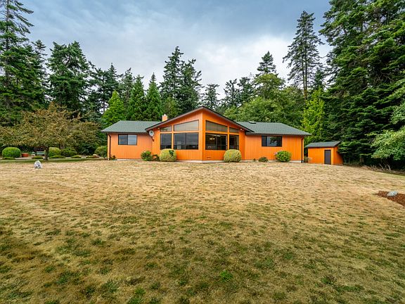 A special 9.6 acre estate in the heart of Ebey?s Prairie w/ sweeping views of the Olympics & Strait. This open northwest contemporary style home features vaulted ceilings & a wall of windows looking out over the expansive and view protected Prairie landscape. Park the car in the attached garage and the toys in the detached garage/shop! The end of the road location provides lots of privacy. New carpet and fresh paint top it all off and make this piece of paradise ready for your personal touches!