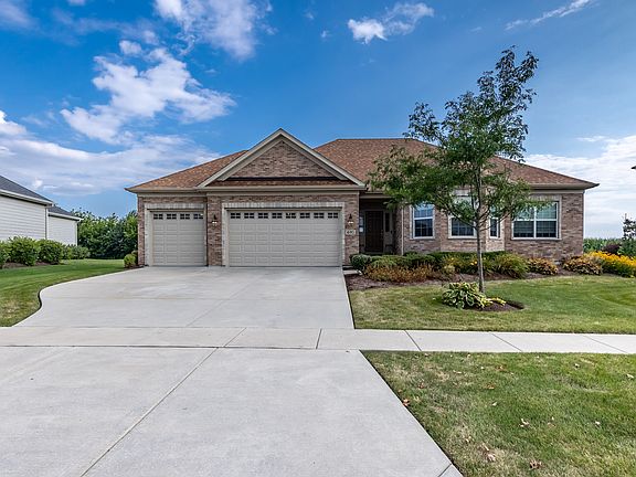 Stunning Ranch home in Highland Woods with nothing but a corn field behind it. Almost 4000 square feet of living space. Hardwood floors in Living room, kitchen and office. Large Gourmet Kitchen with Granite Island with built in table and Breakfast Bar. Beautiful Sunroom with plantation shutters that leads to huge brick paved patio with built in grill and Fire pit. Spacious office/Den off of the kitchen. Beautiful stone fireplace in Living room with a volume ceiling. 3 car garage with heated Epoxy floors. Basement hosts a Rec room, game room, Exercise room, second kitchen, and a 3rd bathroom. Huge Cedar closet in basement for plenty of storage. In ground sprinkler system. Far too many upgrades to list.