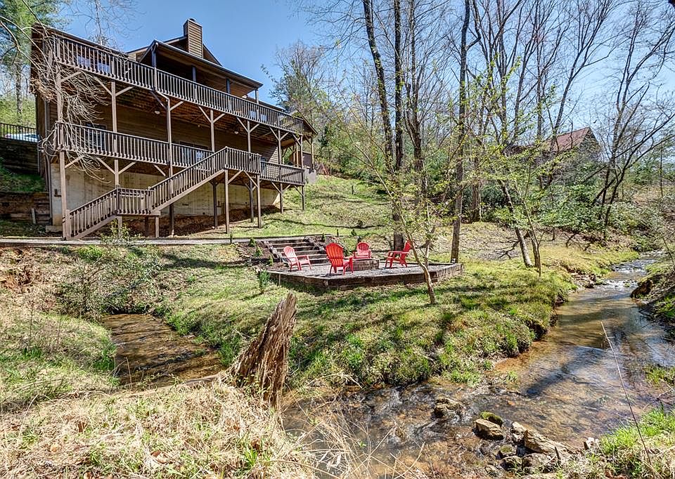 Treat yourself to a CREEKSIDE haven in lovely Highland Creek community! One level living in your new home also features a full finished lower level providing lots of space for family and friends. Meticulously kept with gorgeous features: hardwood floors, wood vaulted ceiling, and a wood burning fireplace in the welcoming Great Room. Dual Master Suites are conveniently located on the main living level. Lower level features rec room, laundry room, 3rd bedroom & bath along with a HUGE bonus room to use as you like. Outside, let the relaxation begin with a fire pit on the banks of your winding creek. Highland Creek enjoys the community pavilion on the Hiawassee River to fish, kayak, and more!