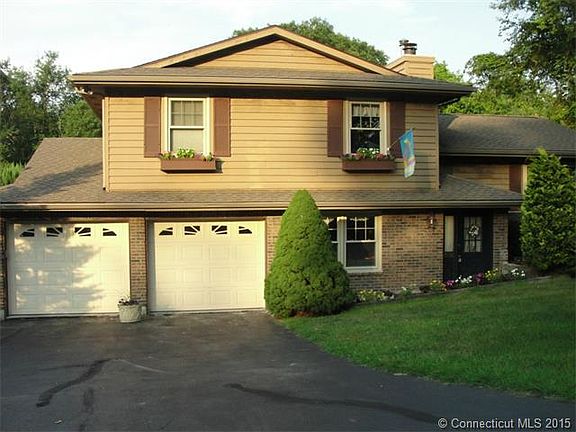 A beautiful stone wall surrounds this contemporary split level on the corner of Twin Lakes Drive. Three bed/2 baths upstairs, and an additional bed and bath downstairs make this a workable home for an in law or child care situation. Bright open plan kitchen with dining area, combines with a living room, easy for entertaining. The space on the lower level is perfect for handicap accessibility, as the front door opens onto a den with working fire place, and bed and bath downstairs . The downstairs also has access to the beautiful lagoon shaped,salt water, heated swimming pool, with a stamped concrete patio. This backyard oasis comes complete with an in pool Jacuzzi and diving board, A playscape is right near the pool, creating a great backyard playground.. The basement is fully finished into a media room/exercise room or den. Great storage space in the basement. 2 car attached garage houses a very nice work space. The outbuilding, at the pool, looks like a mini home, and is great for storage or other uses. This home is situated close to 1-95 and 395. It is close to brand new Waterford schools, great shopping and restaurants. Also very easy accessibility to L&M Hospital and Backus Hospital.