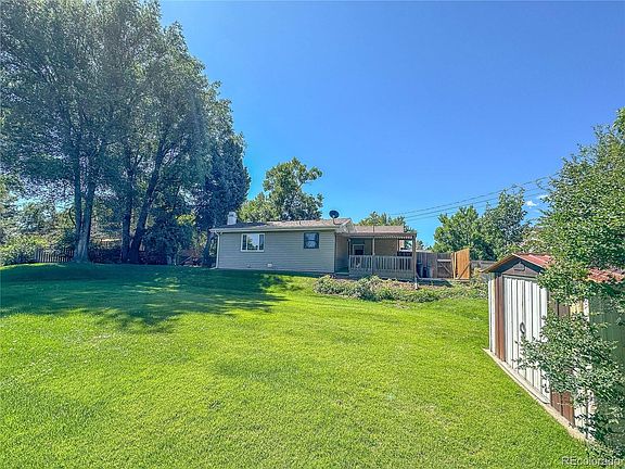 Welcome to this charming, quaint ranch style home located on a large lot with mature trees, offering the perfect blend of cozy living and boundless potential. Step inside directly to the living room, where natural light pours through the large picture window. Adjacent to the living room, you'll find a spacious dining room with ample storage providing the perfect setting for memorable meals with family and friends. Proceed down the hall and find the primary bedroom that has been expanded to create an oversized suite, complete with custom bay window, large walk-in/walk-through closet and custom built-in shelving. En-suite bath includes walk-in shower, and built-in storage. The kitchen opens up to a welcoming family room, brick fireplace creating a seamless flow for entertaining and everyday living. Kitchen has its own island with built-in custom drop table dining table. Just off the kitchen step outside to the back covered patio to enjoy the outdoors and large back yard. Venture downstairs to the basement that holds exciting possibilities. Equipped with an inside shop and utility room. Additionally, there is a non-conforming bedroom, cedar closet and half bathroom in the basement that adds practicality. Enjoy plenty of parking on the extra long driveway and side driveway. Garage space includes plenty of storage including built-in cabinets. Store all your garden supplies in outside shed with concrete floor. This home presents a fantastic opportunity for those who love to embark on home improvement projects and transform spaces to reflect their vision. Located within walking distance to Runyon elementary school and the Highland Canal. Close to shopping, restaurants and highway C470