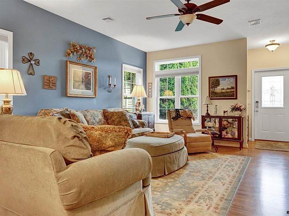 Private setting and a pleasing open floor plan. Front porch to a great room that opens to your kitchen w/ breakfast bar, granite counters, & stainless appliances. 9' ceilings. Dining area flows into 4-season rm w/ luxury tile flooring. 2 sliding glass doors to composite deck. Master suite w/ double sink, shower, & walk in closet. 1st flr laundry to over-sized garage. Unique staircase to expandable 2nd floor for future bedrooms & bath.