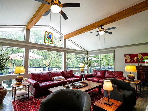 Don't miss this rare JIM FOX design at Wildcat Cliffs Country Club. This INCREDIBLE one-Level home, designed by renowned architect Jim Fox, offers timeless mountain living in the heart of in Wildcat Cliffs Country Club. From the moment you arrive, the property welcomes you with beautiful native landscaping, circular drive with parking up to 5 cars, and distinctive curb appeal. Step through the updated front door entry, and you're greeted with a peaceful view from the expansive back deck. The large living room area features a stone fireplace with the ease of gas logs, a dramatic wall of windows that fill the space with natural light, and lots of built-in's with generous storage - perfect for displaying your favorite mementos. The split floor plan provides privacy, with the Primary suite on one side and two additional bedrooms and a bath on the other. The full unfinished basement could expand the living space with: a playroom, a movie rook, additional bunk-room. Plus a workshop area for hobbies or storage, and ample storage throughout the home ensure convenience at every turn. This rare opportunity to own a Jim Fox home in Wildcat Cliffs Country Club blends architectural distinction with comfortable, functional living - ready for it's next chapter.