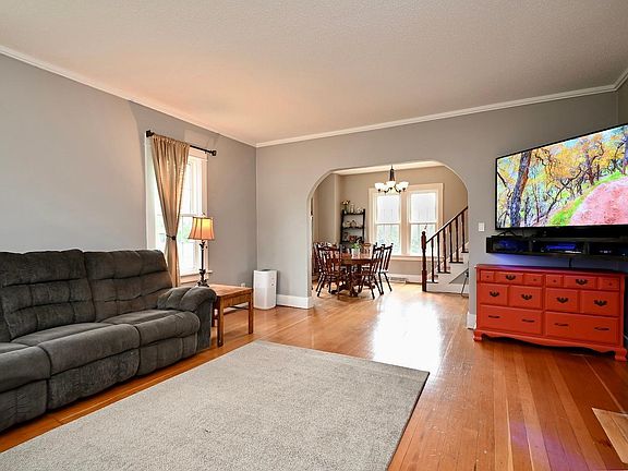 Recently updated with new siding in 2023, the house boasts an abundance of natural light and ample storage. It features a detached 2-car garage and sits on a spacious lot, ideal for outdoor activities. Conveniently located across from the high school and near other amenities, this property offers both comfort and convenience.