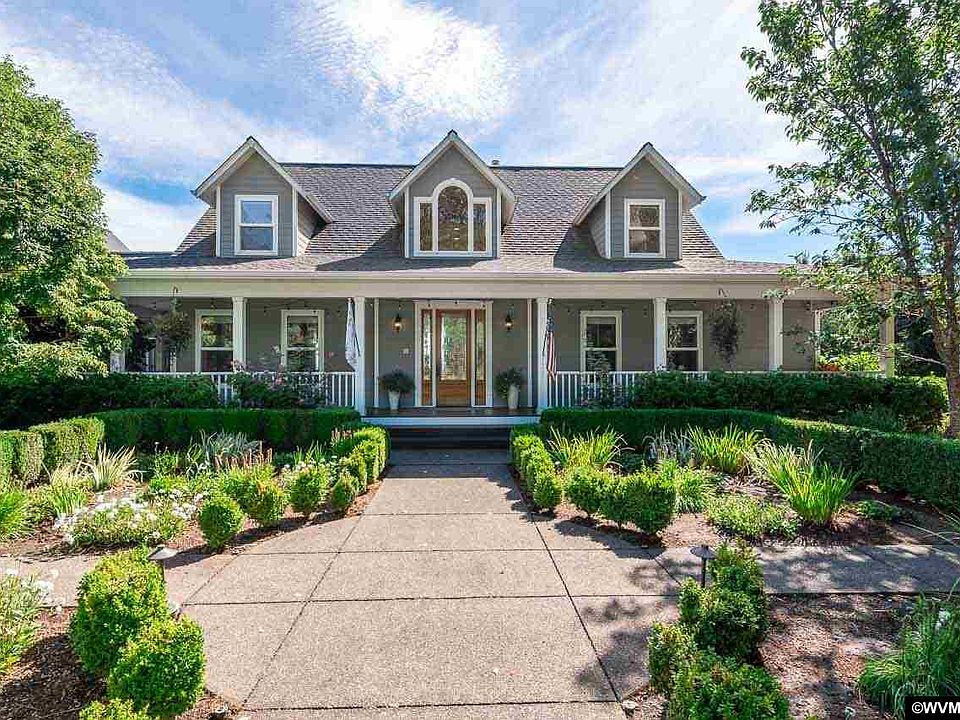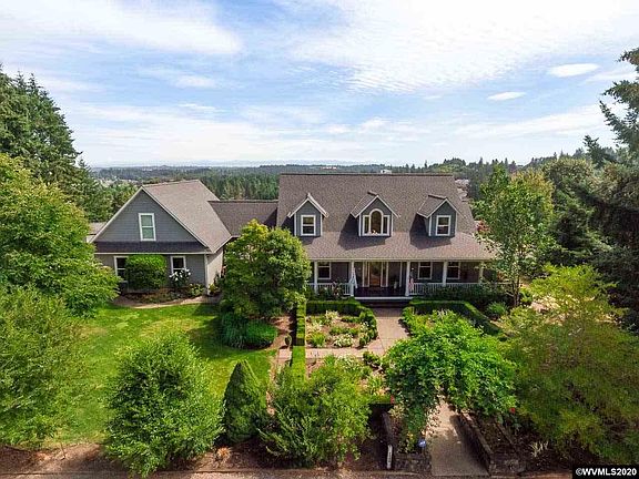 Close in country on 2+ acres w/privacy & breathtaking views. Custom built 4858 SF, 5 bed & 5 bath home. Lush landscaped grounds, old fashioned covered front porch & covered back deck w/Mahogany decking. Soaring ceilings, hardwood floors, huge picture windows. Dream Kitchen w/SS apps, granite, walk-in pantry, breakfast bar. Formal & Informal dining. Gas FP. Master on main w/WIC & Shower. FA Gas, CAC, Infloor heating. Lower level w/rec rm, theatre rm, wine cellar. 3 car garage w/work space. Salem School Dist.