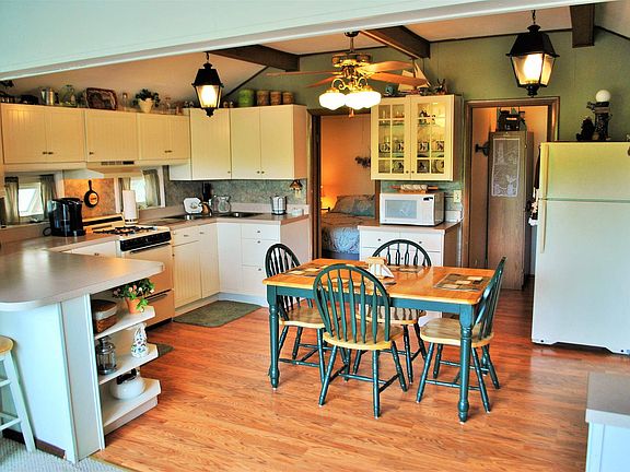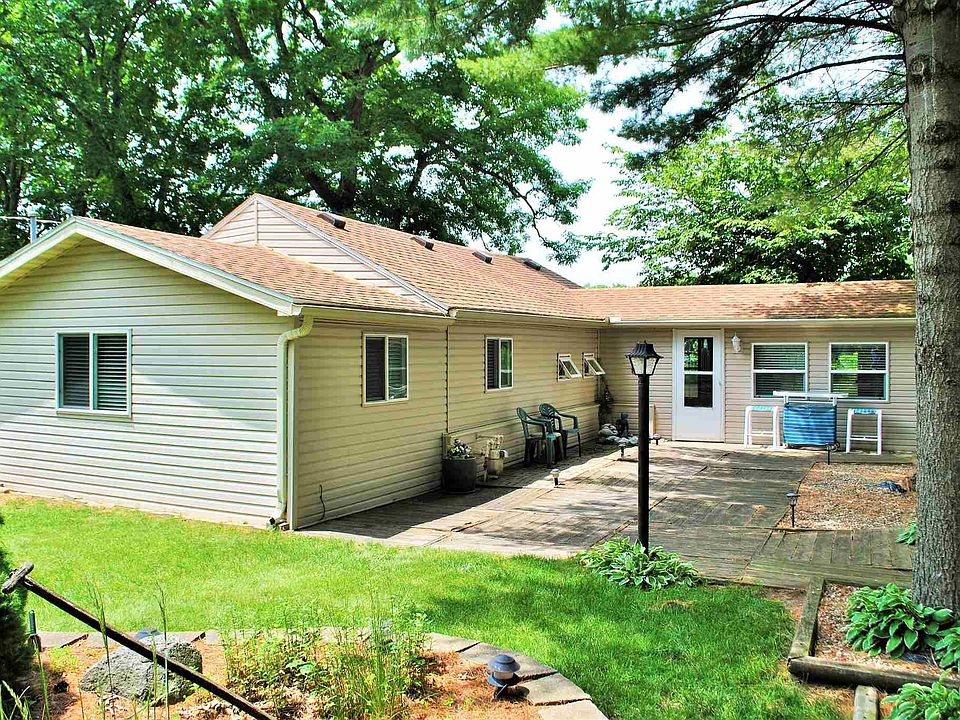 Your summer getaway awaits! This 3 bedroom 1 bath cottage with a 1.5 car garage sitting on a no outlet road is sure to impress. Massive lakeside deck with breathtaking lake views, newer seawall, permanent dock and built-in storage lakeside. The home features vaulted/beamed ceilings, living/dining combo, cozy eat-in kitchen with lake views and plenty of places for friends and family to call it a night. Home comes mainly furnished so all that's left to bring is your swim suit.