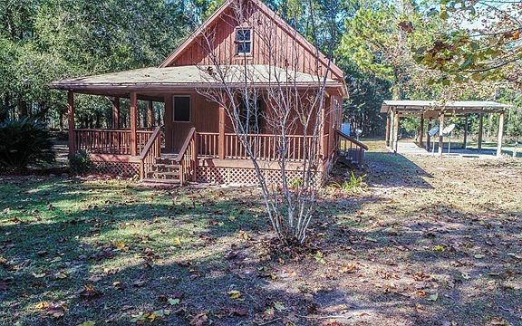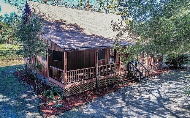 Lovely cabin home on 2.5 acres. Home is beautifully constructed w/ wood floors, beams and woodwork inside and out. Main floor features family room, dining room, kitchen and master bedroom suite with bathroom. Up a spiral staircase there are two more loft rooms and a half bath. Outside enjoy the porches and the yard full of fruit trees, a two bay, covered RV parking pads with hook ups. The kids will enjoy playing out in the fenced yard with a mixture of wooded areas and open pasture. Just minutes from Otter Springs.