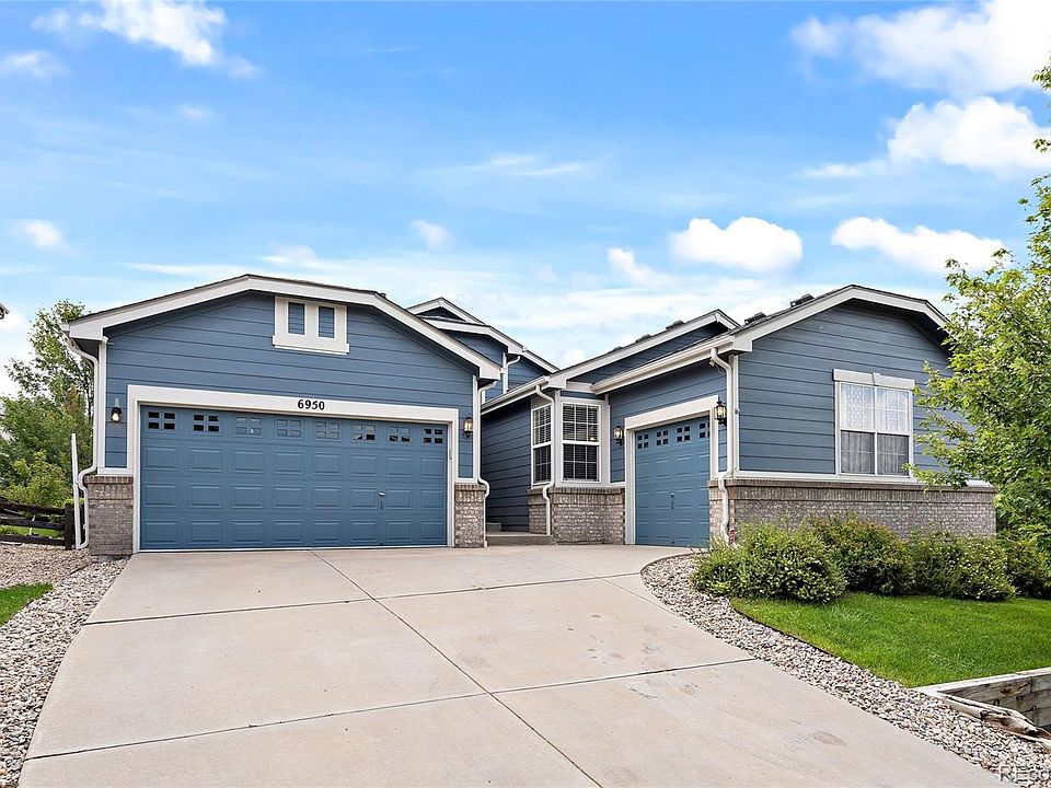 Step into your spacious new ranch-style home nestled in the coveted community of Castle Pines North at Serena! With 6 bedrooms and 3 bathrooms, this home offers an abundance of space for you and your loved-ones. You will be greeted by soaring 10-foot vaulted ceilings, creating an open and airy atmosphere. The main floor boasts a primary bedroom suite for your comfort & convenience, along with three additional bedrooms perfect for family or guest. The spacious dining room allows for great entertaining connecting to the outdoor covered patio. With a main floor laundry room, no more lugging laundry up and down those stairs.