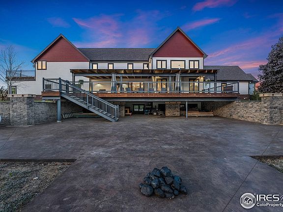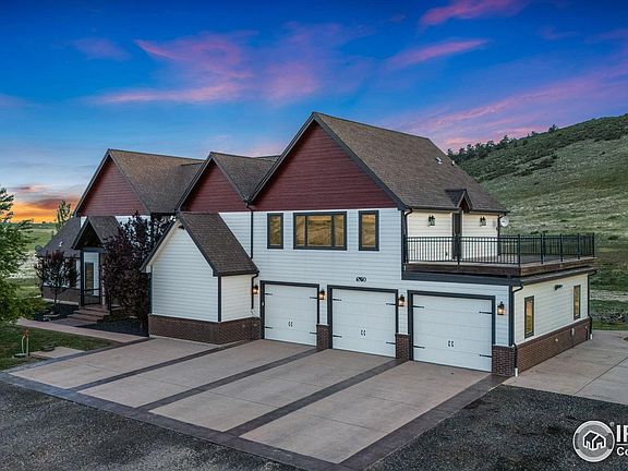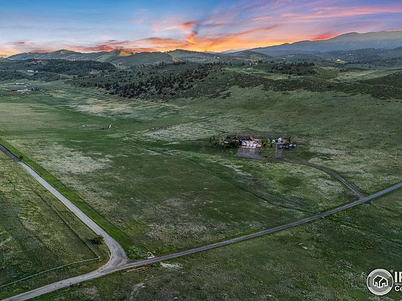A long, scenic driveway welcomes you home to 35 private acres of pure CO beauty, set against a dramatic mountain backdrop and rugged rocky ridgeline. This custom farmhouse-style retreat is rich in craftsmanship, with custom concrete surrounding the entire home and black welded-iron railings framing the expansive back deck-perfectly positioned for captivating sunsets. Step inside to discover a warm, open layout designed for both everyday living and unforgettable entertaining. Exposed timber beams and a custom-built fireplace with west-facing views anchor the living room, while the open stairwell leads to a loft that offers breathtaking mountain views-ideal as a luxury office.The spacious dining room features picture windows that showcase the acreage, and the open-concept kitchen is a chef's dream, w/a large gas cooktop, bartop island for casual dining, and ample counter space. This thoughtful layout offers ideal flow for daily life, relaxation, and gatherings. A grand main-floor suite offers vaulted ceilings, French doors, and a full en-suite bath-your own private retreat with comfort and charm. Upstairs, the primary bedroom stuns with sprawling wood ceilings, panoramic views, a private deck for morning coffee or evening sunsets, a five-piece luxury bath with rustic finishes, and a generous walk-in closet. The upper loft captures magnificent mountain light and views in all directions. Outside, enjoy an enormous stamped concrete patio and covered deck with endless possibilities for games, entertaining, or fires under the stars. A grand concrete stairway leads to a lower patio and horseshoe pit. Two storage buildings with attached fenced pens are perfect for chickens, goats, dogs, livestock, or workshop- ready to fulfill your CO farmstead dreams. Every corner of this property has been thoughtfully designed to embrace the views, privacy, and lifestyle of true Colorado living. Best of both worlds; horse potential, no HOA, outside city limits, while only mins from town.
