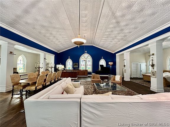 Wow!! Exquisitely remodeled former church that was built in 1908 with the 12 original Craftsman/Frank Lloyd Wright style stained glass windows still in place. Beautifully preserved original tin ceilings on main level. All new bathroom with a walk-in shower. Off street parking area. The bell is still in place in the bell tower and is still operational. Some new electric ran, new water heater, some new plumbing, new paint on main level, some new custom red oak flooring and some original hardwood flooring. This home has lots of history and offers an open loft style floor plan and it is just waiting for you to make it your own. The main level offers a vestibule at the front entry, a large living room, kitchen, dining area, office area, 2 sleeping areas, a full bath with laundry area and an exterior 1/2 bath. The basement has lots of possibilities and offers a kitchen with upper and lower cabinets, a sink and also an open area that can been section off with an accordion style door as well as an additional room that was previously a classroom. The basement has interior and exterior access. SEI internet with buried cable. LP gas tank is owned by Ellis Gas & Oil Company
