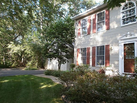 New England setting! Salt Box style traditional colonial. Dramatic 2 story foyer with formal LR DR, then great room with deluxe kitchen & sunken FR w/custom cabinets & wood fireplace. 3 BR 2 Baths upstairs with 4th BR or office in basement (option for a 4th 3/4 bath) and 2nd FR in basement with full windows. Lots of STORAGE throughout. NEW 2017 Blacktop drive with turnaround, steel siding & deep 2 car garage. NEW 2017 16x12 deck overlooking landscaped fully wooded lot with deer and many bird residents including occasional pileated woodpeckers. NEW 2017 SS Whirlpool stove & fridge. Natural gas, cable TV/internet, shared well, softner/iron filter. Entire wooded yard landscaped with many shady perennials and specialty hostas. [Note: last sold price below was lot only] Neighborhood Description Balance of a few families with teens but mostly middle age and young retirees. There is a neighborhood distribution email and a July pig roast pot luck picnic.