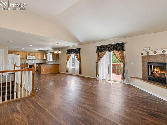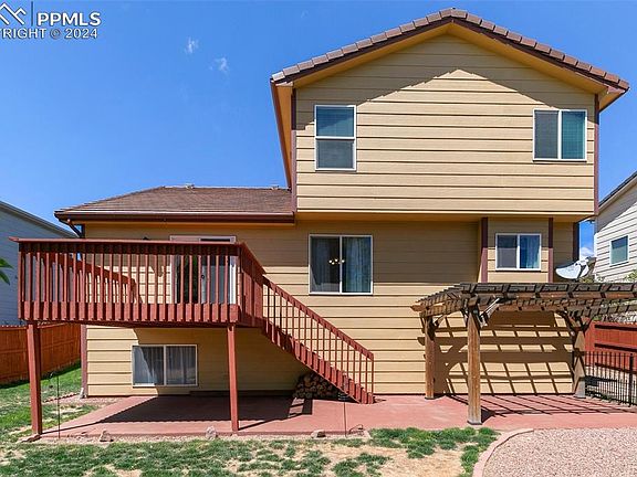 Discover comfort and style in this charming three-bedroom home in Fountain. Exterior renovated in 2017, featuring new windows, exterior paint, and a high-impact, hail-resistant roof, this home offers durability and modern appeal. Inside, a five-piece master bath, linen closet, and his-and-her closets provide convenience and luxury. The master bedroom boasts a vaulted ceiling, while the second and third bedrooms feature delightful window seats with flower boxes. The main level impresses with laminate vinyl plank flooring, High Ceilings, a gas log fireplace, and a master kitchen equipped with upgraded granite countertops, an upgraded kitchen sink, and a walk-in pantry. All kitchen appliances are included. For future expansion, a full, unfinished basement with a roughed-in bath awaits your personal touch, offering a garden-level view and natural lighting. Outside, the back yard beckons with a wood deck, large stamped and stained patio, shed, sprinkler system, wood arbor, peach tree, and firepit, providing an ideal space for relaxation and entertainment. Additional features include central A/C, wifi for all lights, a back slider door with internal shades, RV parking, and proximity to military bases. Don't miss the chance to make this your dream home!