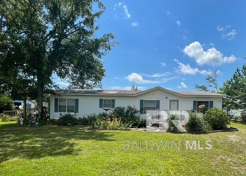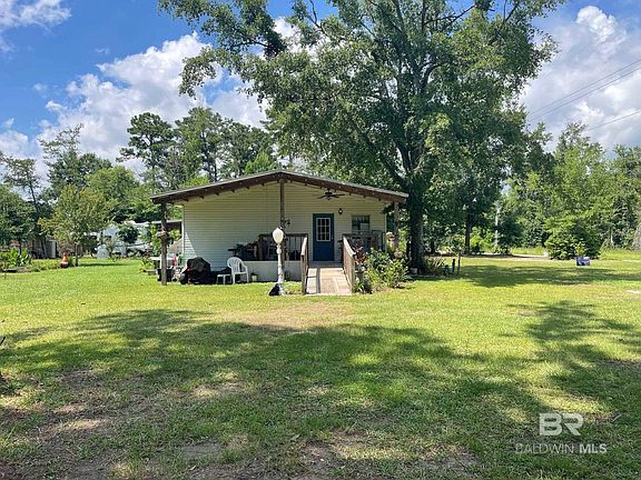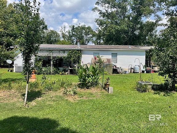Nice double wide mobile home sitting on approx. 3/4 acres with six fruit trees (2 satsumas, 2 orange, 1 lemon and 1 pear tree). Home is surrounded by three open decks, one is handicap accessible with ramp. Home has a split floor plan. Living room has a fireplace. Skylight in kitchen area gives extra lighting. Master bedroom has a garden tub and separate shower. Hall bath has a walk in tub with shower. 2 storage sheds with power-one also has water ran to it. Being Sold As Is Where Is. Must see to appreciate. Buyer to verify all information during due diligence.