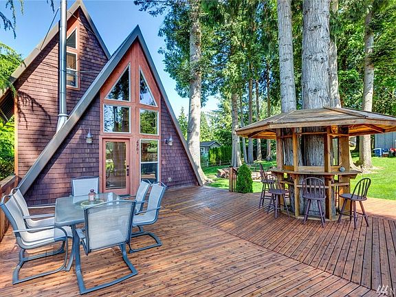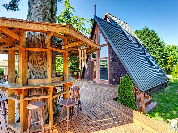 TWO homes on one lot - live in one, VRBO the other! Enjoy bay views from the front porch or entertain guests on the massive 2,100 sqft cedar deck. This entertainer's delight features a custom brick fire pit, 30x30 shop, and plenty of garden space. The 2008-built A-Frame includes a metal roof, kitchenette, wood stove, full bath and an upstairs loft-style bedroom. The second 408 sqft home has a full kitchen, 3/4 bath, tons of natural light, and plentiful storage. Live like you're on vacation!