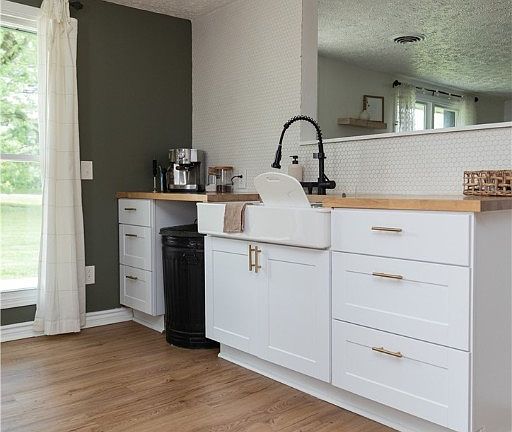 Gorgeous!! This home has been remodeled, inside and out! Modern and stylish, this ranch includes 3 bedrooms, a large bathroom, open concept living and kitchen area, and a HUGE backyard. The exterior has been redone, including siding, a metal roof, concrete patio overlooking the beautiful backyard, and landscaping. The 3 car garage measures 43x32 with plenty of space for projects. Bring your gearhead and furbabies, everyone will enjoy this tastefully done property!
