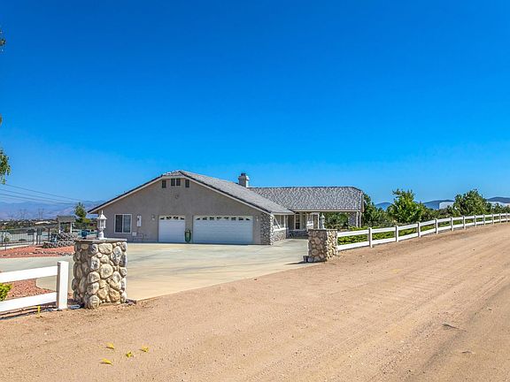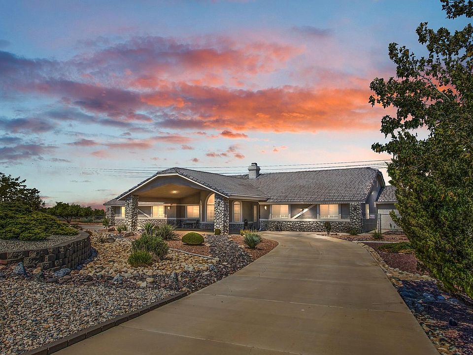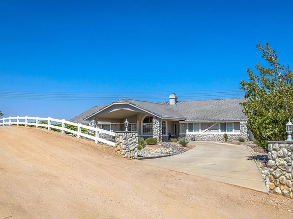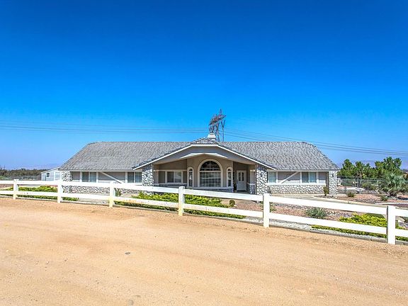 West Oak Hills just outside the the Summit Estate this home sits on 5 acres with two (APN APN 19 and APN 20) with an amazing view of the High Desert city light and San Gabriel Mountains. Just off pavement,natural gas and horse property. Welcome home to this Custom built beauty. As you drive up to the over-sized portico you can't help to notice the detailed front entrance with decorative river rock. The front yard is completely landscaped with drought tolerate plants and rock and concrete hard-scape. This property if fully fenced and cross fenced with vinyl and chain link. This split floor plan features 4 large bedrooms and 3 full bathrooms with one room completely separate with it's own entrance. With an over-sized kitchen Oak cabinetry and pull outs drawers with gorgeous granite counter-tops. The vaulted ceiling accentuate the living and family rooms and the rock fire places gives a cozy feeling. Step into you very own oasis back yard pool/spa with security fencing and covered patio great for entertaining or just staying home and enjoying the evening sunsets, pool also has solar heating for use the entire year. Property also includes an over-sized 3 car garage and separate storage shed.