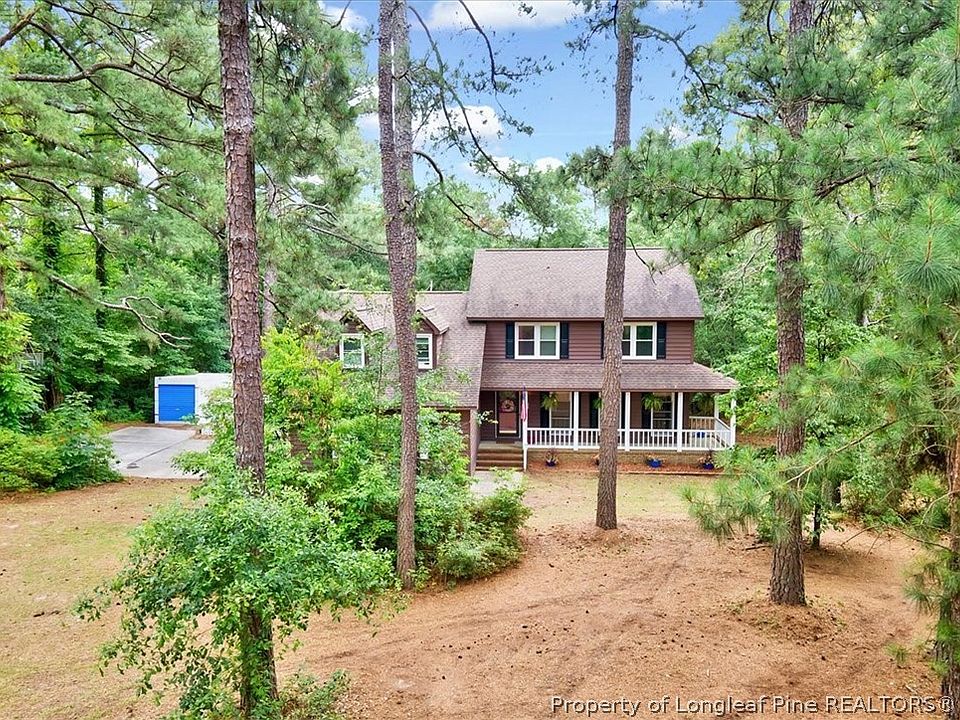 Price Improvement! Surround yourself with the privacy you deserve on 1.9 acres! This 3 BR home includes a bonus room and sunroom (not inc. in sq ft). Only minutes from stores, restaurants, and 25 mins from Fayetteville/Fort Liberty. Walk out of your living room through the new sliding glass door onto a large two-tier deck around the above-ground pool or relax on the fully covered raised lanai. The home features a whole-house water filtration system/softener, 2022. New windows in every upstairs room-2019, a new roof-2018, upstairs HVAC-2022, and downstairs HVAC-2014, with all new duct work-2024. A formal dining room sits off the granite countertop kitchen and offers views of the large front porch and front yard. It's time to escape the city and find your peace in this quiet community!