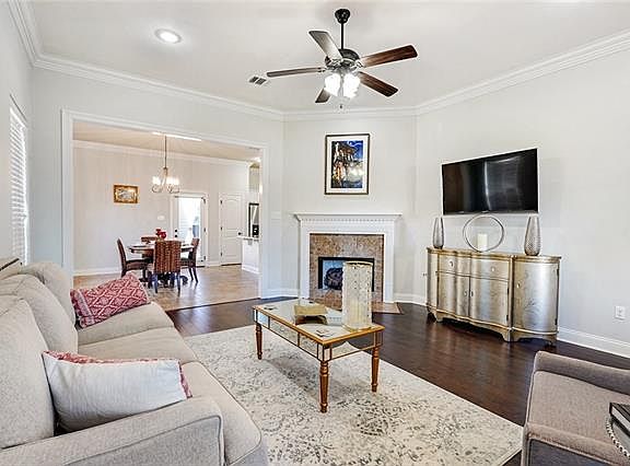 Come home to this meticulously kept & freshly painted space with the perfect neutral color, it feels like new construction! The living room has wood floors, gas fireplace, crown molding & opens to the dining which opens to the kitchen. The dining & kitchen area features crown molding with tons of natural light, upgraded stainless appliances, gas stove, granite counters & pantry. Large master has HUGE walk in closet, master bathroom features tub & shower. Home backs up to permanent green space!