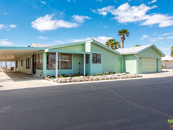 Welcome to Dillon Estates, This Senior Co-Op community is a hidden gem. No Land Lease fees per month. LOW HOA of only 135.00 per month. When you own a home in Dillon Estates you also buy into the Co-Op so you're an owner. RV/BOAT storage for low monthly fee. This home features 3 bedrooms, 2 full baths, large living area. The roof was replaced in 2019, a New AC condenser in 2017, Guest bath shower in 2017, and new kitchen floor in 2019. Enjoy the stunning views from your sun porch or backyard. Enjoy the onsite Mineral Pool/Spa from the communities own Hot Water Well. There is so much to love about this place. Located in an unincorporated area of Riverside County, minutes away from Palm Springs, Palm Desert and all the Coachella Valley has to offer.
