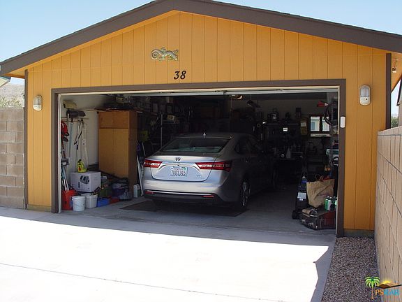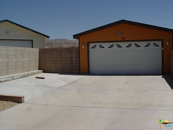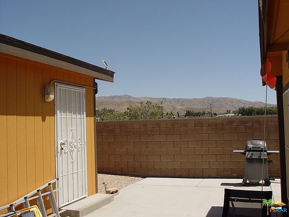 Beautiful home on a double lot with 4 bedrooms, 2 baths and an inviting great room with a wood burning fire place. Rich colors throughout the home with many upgrades, such as plantation shutters, granite counter tops in kitchen, solar panels, 1 year old large Trane AC, evaporative cooler, and more. Front yard is beautifully landscaped with irrigation. The home sits on the outside parameter with no homes in the back of it, in this well maintained 55 and over gated community. The community includes mineral-water pool/2 spas, clubhouse, gym, BBQ, card room, RV storage. The HOA fee is $114/month/lot and covers property tax for the land and trash.