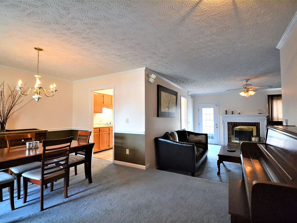 Charming 3 bedroom home with a bonus room, spacious living room with a wood burning fireplace, great for this fall. This backyard is an oasis with a three- tier deck, swing set, privacy fence and very relaxing. Formal dining, eat in kitchen, laundry room, large garage, an updated bathroom and spacious closets throughout. Brand new stainless steel appliances to include stove, dishwasher and a fridge. Relax on your front porch and enjoy the comforts of a smaller community. Pets welcomed and encouraged, dog and cat doors installed.