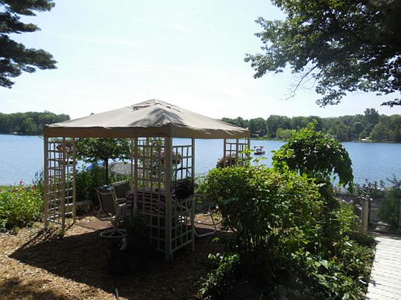 All Sports Long Lake! Very Hard to find large lot w 100 ft of the best beach on the lake! Natural shoreline. Permanent dock! This one has it all , room for parking incredible garden areas, where everything comes up every year to enjoy without the work. Your gazebo is here,for morning coffee or evening cocktails! this part of yard is fenced for lil ones and for the dog! The outside living space at this home is breath taking! from at the house to at the waters edge! Sandy awesome frontage , huge space for bonfires! Volleyball net in the water! There is fun to be had here immediately! move right in! Many many updates! Septic, rood windows furnace, nat gas added, Kitchen remodeled, every room has been upgraded! Beautiful stone fireplace w insert! and one of the best features of this home for summer is the lakefront screened porch! The view from here is fabulous! Lazy summer evenings with family and friends for scrabble or many other fun times with no bugs!!But this is not just a summer cabin! This is a year round home! The colder months you will feel like you are outside( but warmer) with so many windows facing the lake! Master bed rm w own bath and laundry area on main floor! Dining area, remodeled kitchen, many skylights in this home for brightness! 2 brs upstairs. Game room 20 x 20 for your pool table bar or just extra room! great garage! this lot is surrounded by mature trees front and back for perfect shade, and home is positioned to take full advantage of lake breezes! There is so much i could tell you, but you need to come see this one! great buy! for additional $ there is a two story two car garage across street on 3 lots if you need lots of extra space, if not purchase just the house with garage on lakefront property! your call! but make the call to me today to see this one!!!